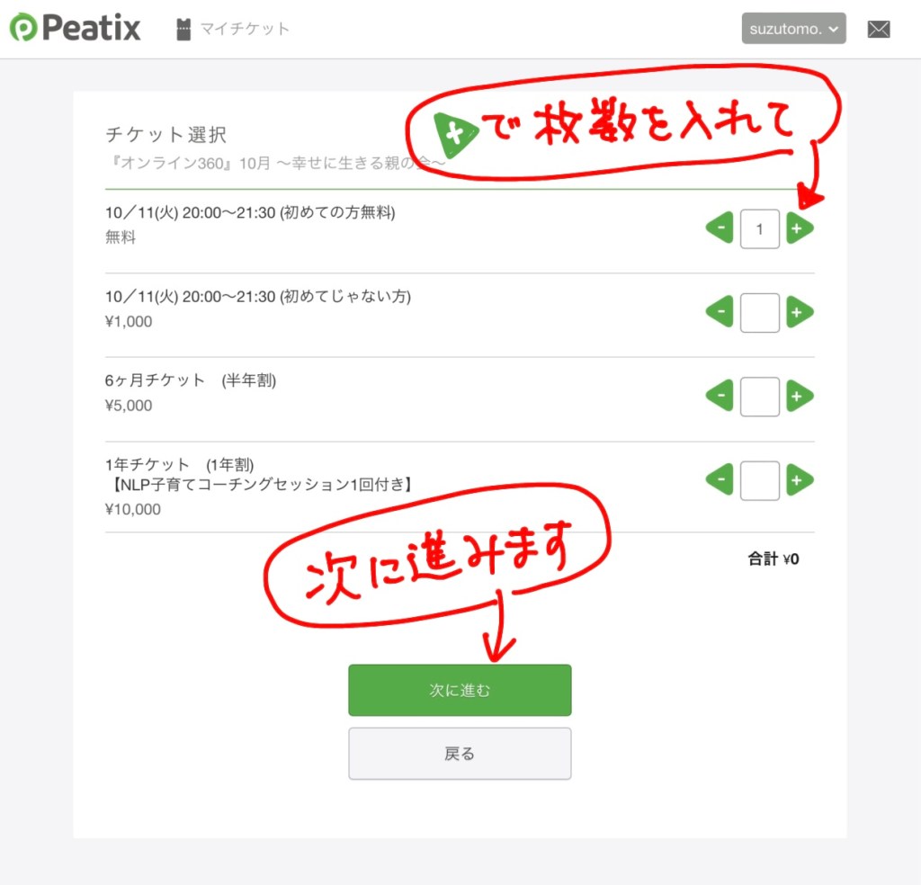 手順3:Peatixのオンライン360ページに行く