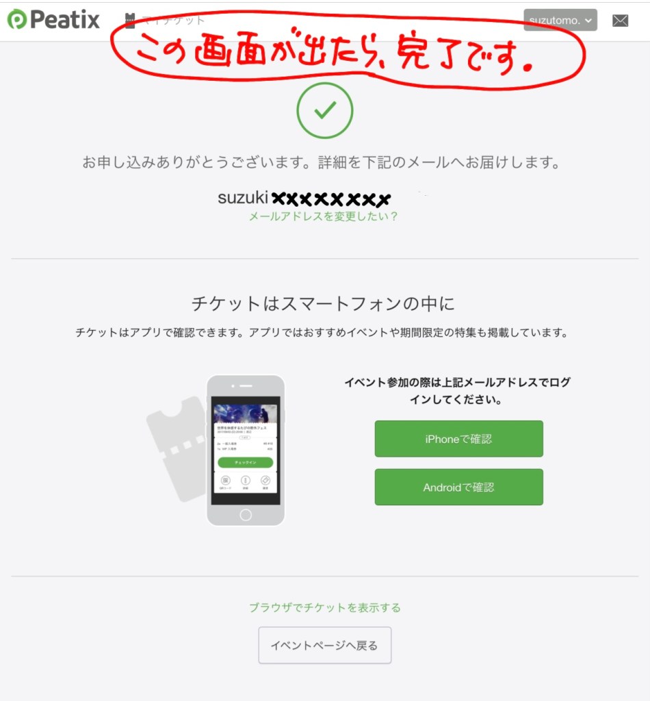 手順7:申し込みボタンをクリックしたら、チケットの購入完了です。