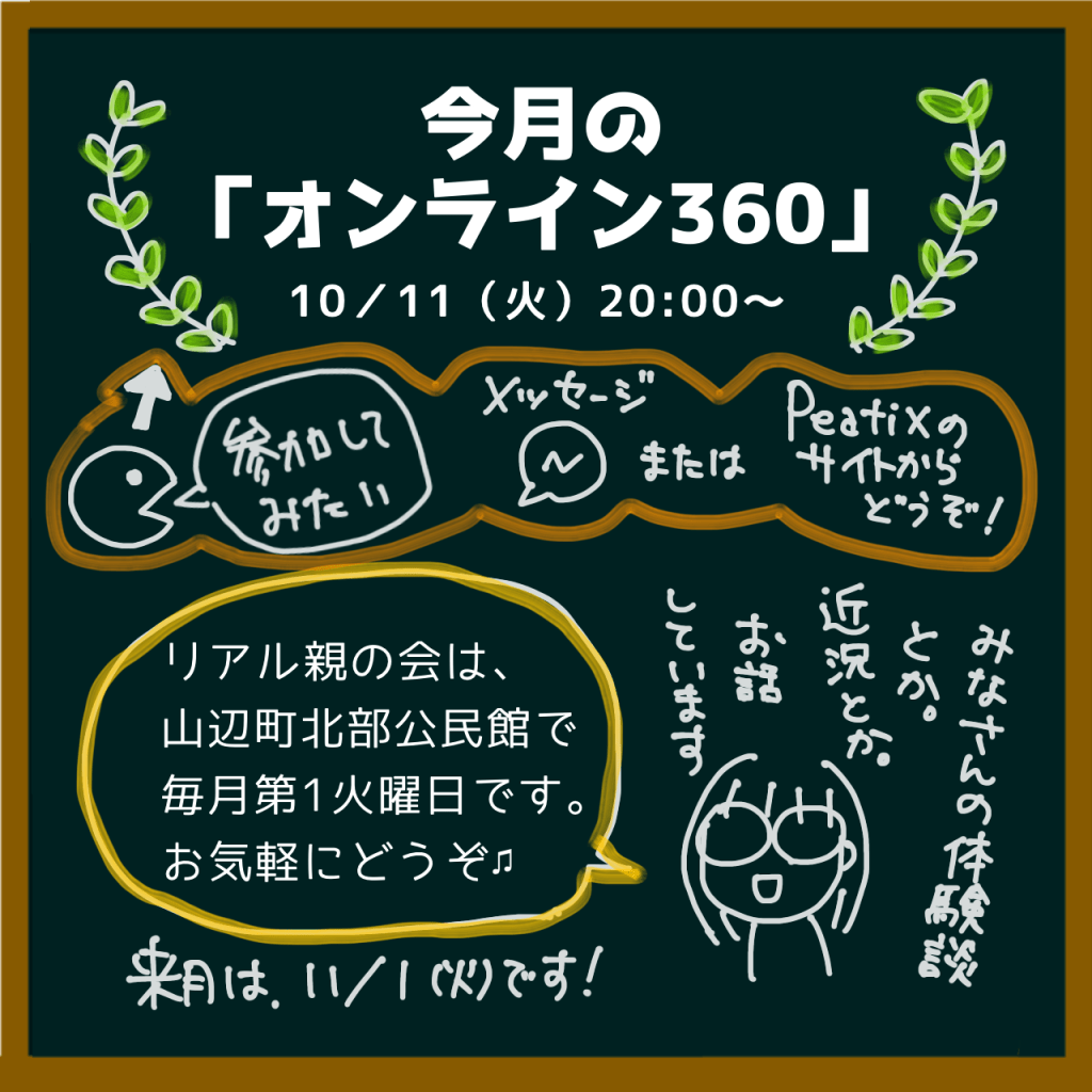 山形県でリアル親の会「さんろくまる.」と、zoomでオンライン親の会「オンライン360」を開いているNLP子育てコーチです。