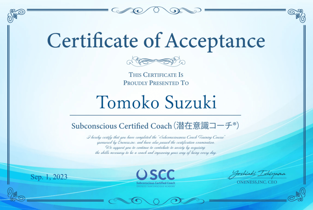 新たに学んだ潜在意識コーチングの要素も取り入れながら、コーチとして更に皆さんのお役に立てるよう、歩んでいきたいと思います。