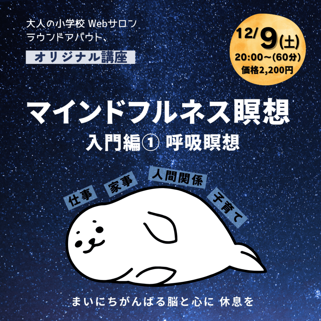 ・12/9(土) マインドフルネス瞑想講座・入門編①呼吸瞑想